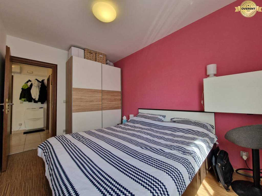 Die Wohnung besteht aus Eingangsbereich, Schlafzimmer, Badezimmer und Küche mit Wohnbereich und Zugang zum Balkon.